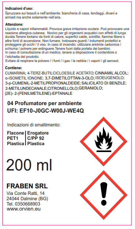 04 Profumatore spray per ambiente e tessuto 200 ml